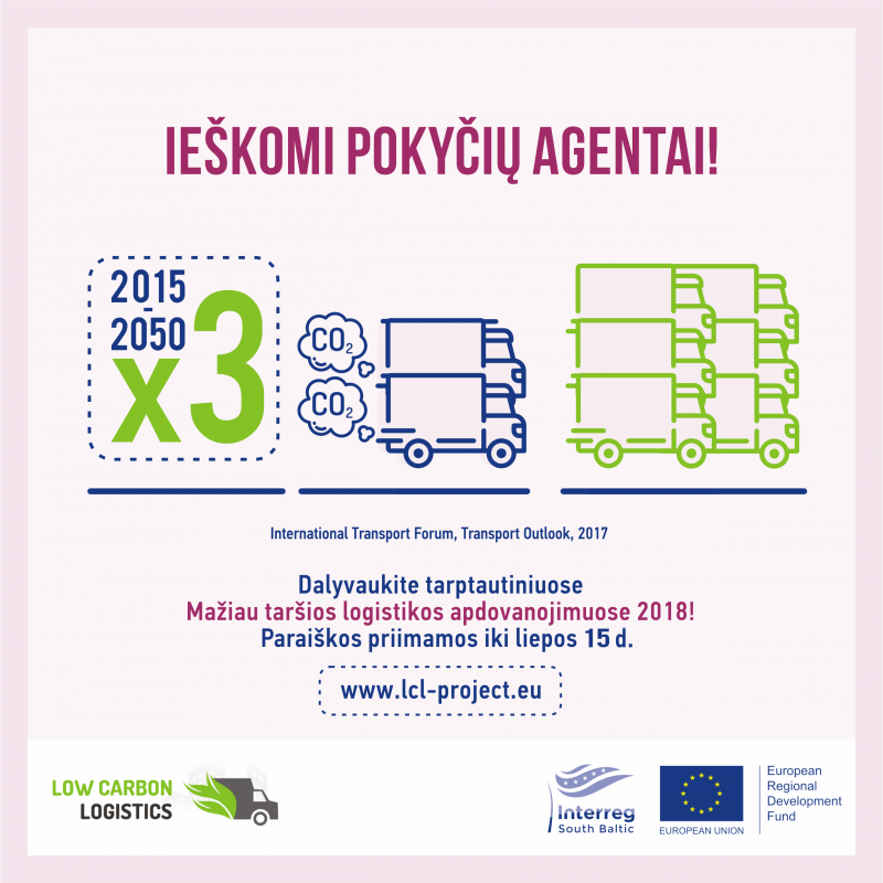 Pirmą kartą Lietuvoje skelbiami tarptautiniai Mažiau taršios logistikos apdovanojimai - http://lcl-project.eu/award/. Vokietijos, Švedijos, Lenkijos bei Lietuvos verslo įmonės, savivaldybės ir nevyriausybinės organizacijos susirungs dėl metų projekto nominacijos.