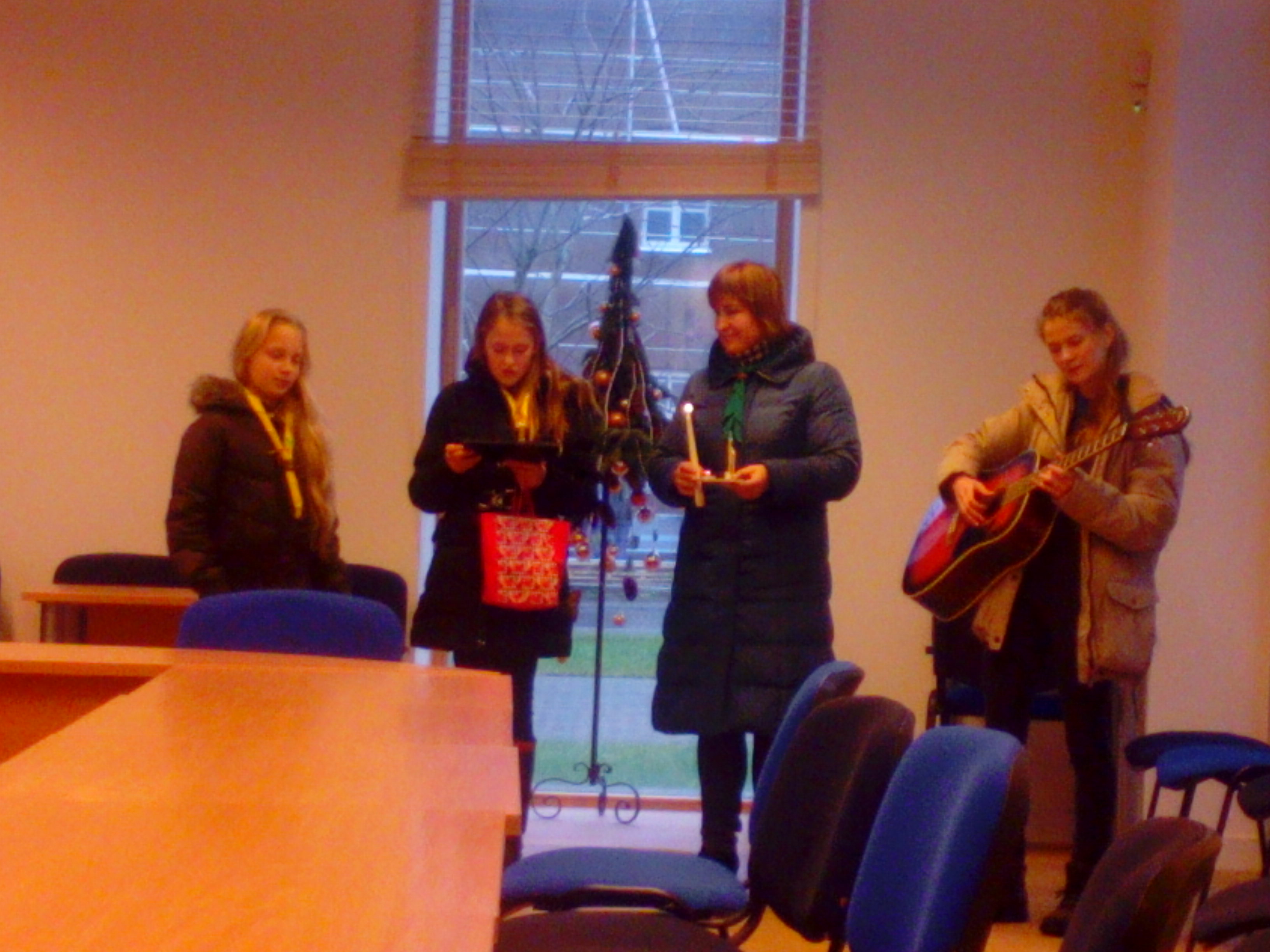 Po gražaus muzikinio šventinio pasveikinimo svečiai šventąja ugnele pasidalino su centro darbuotojais ir svečiais.