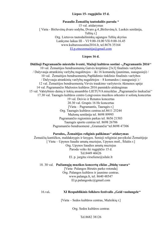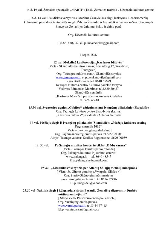 Liepos 9 – rugpjūčio 15 d. pirmą kartą vyks Pasaulio Žemaičių dienos, kurių metu bus organizuojami net 140 renginių