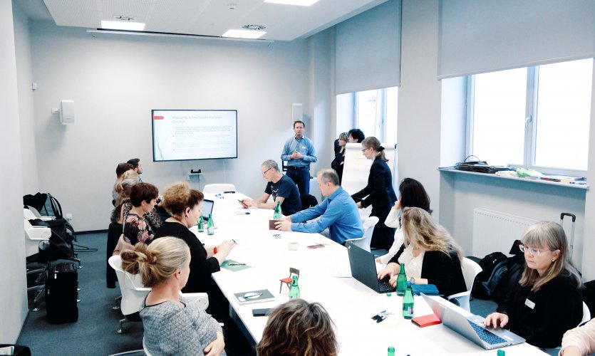 Jau kitą dieną (spalio 12 d.) RTVIC kolektyvas drauge su SB FOODINNO projekto partneriais ir studentais dalyvavo - „Design Thinking“ mokymų užsiėmime, kurio metu buvo kuriamas įrankių rinkinys, skirtas maisto sektoriaus inovavimo procesams paskatinti, aptariami maisto klasterių atvejai.